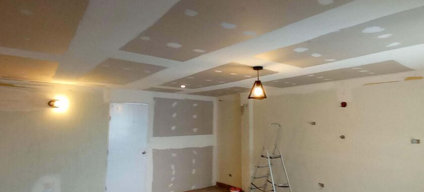 Drywall techo con calaminas y cielo raso con placa de yeso en 26 m2, realizamos solo la instalación, el propietario proporcionó todos los materiales.